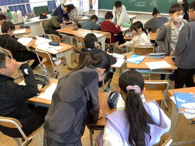 次は3年生の学年合同の英語でのクイズ大会の様子です。