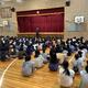 1〜5年生は最後の給食でした。1時30分ごろ下校のため1年生がホールに集合。