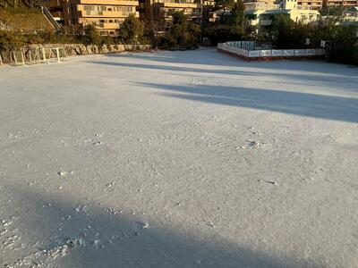 運動場は一面の雪です。