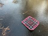池も凍っています。