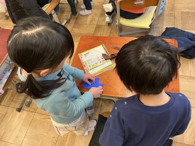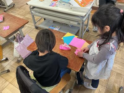次の1年生が入学する時の飾りの花を折り紙で作っています。