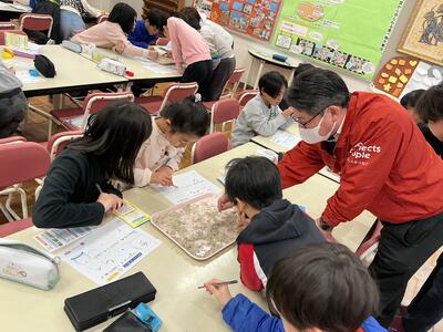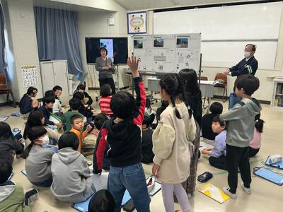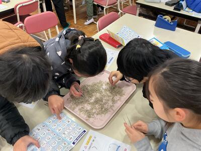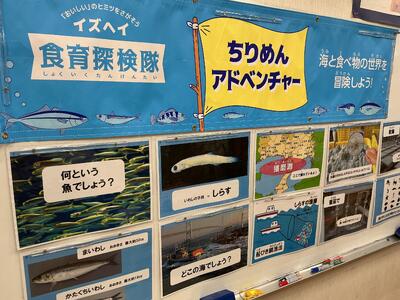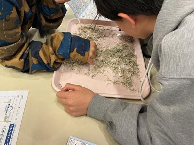 給食でお世話になっている泉平さんをお招きし、ちりめんのお魚の分類に挑戦しました。