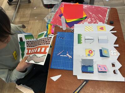 うまく本を鍵盤ハーモニカのケースに立てています。