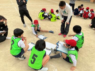 どうやったらチームが速くなるかな、走る順番を考えます。