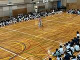 1年生は体育の着替えの説明を聞いています。