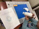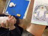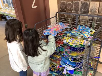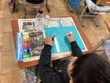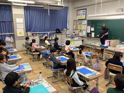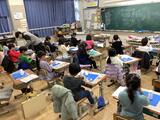 2年生が作品を乾かしています。自分だけではなく友達の思いのこもった作品を大切に扱っています。