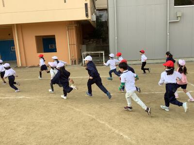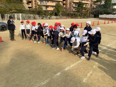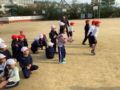 半分ずつ走り、残りの人が応援です。