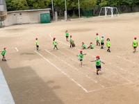 4年生、リレーの練習。バトンパスの練習の成果を試しています。