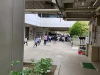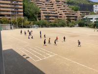 今日は放課後、運動場に各自の立ち位置を示すラインが引かれました。あまりに綺麗だったので思わずパチリ。校章の形です。