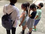 アイマスク体験もしました。曲がるところや階段は声をかけます。約束ごとを守り信頼関係を築きます。