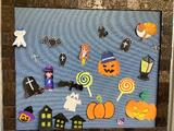 2階廊下の掲示は早くもハロウィンに。コミスク秋まつりのポスターも貼られています。