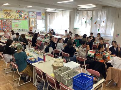 栄養の先生の給食の話に引き続いて、保護者の方で配膳、試食の流れとなり、終始和やかでした。