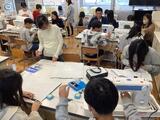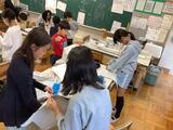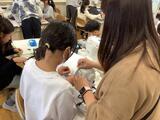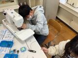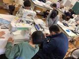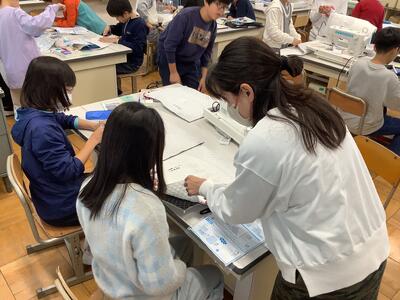 自然学校に持っていくナップサックを全員が作ろうとクラスがすごい教え合い。
