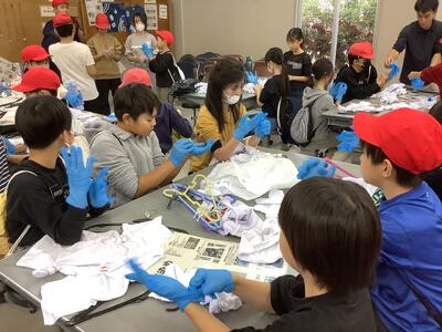 施設に着いたら、早速「藍染め体験」に挑戦。オリジナルTシャツの完成が楽しみです。
