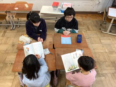 1年生と6年生が互いにお話しを読みました