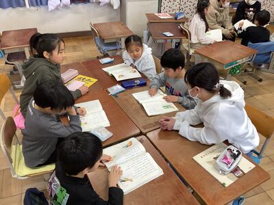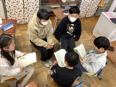 相手の方に身を乗り出して聴く6年