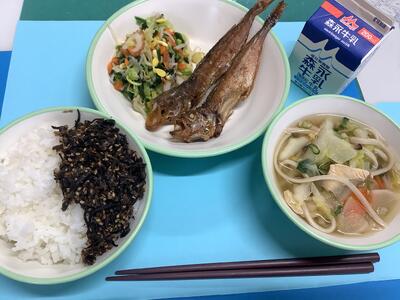給食週間3日目は立派なハタハタが登場