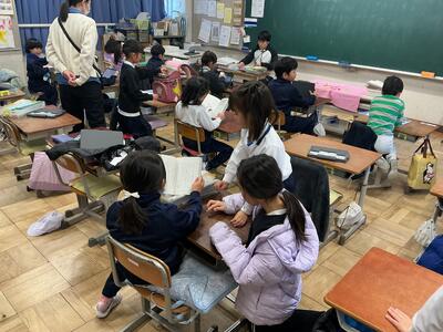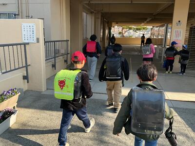 入学後数日は下校ルートごとに途中まで先生がついて帰ります。