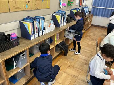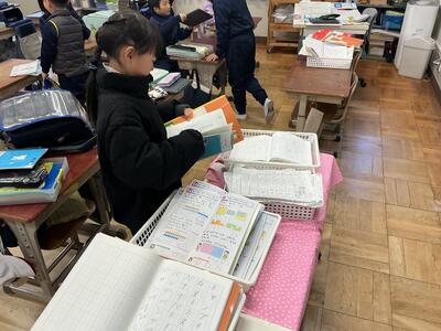 連絡帳や宿題を出します。