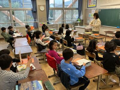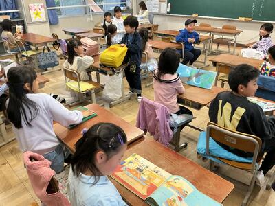 すでに子どもが朝の会を始めています。