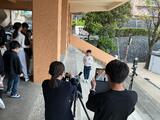 個人写真を撮っている6年生。
